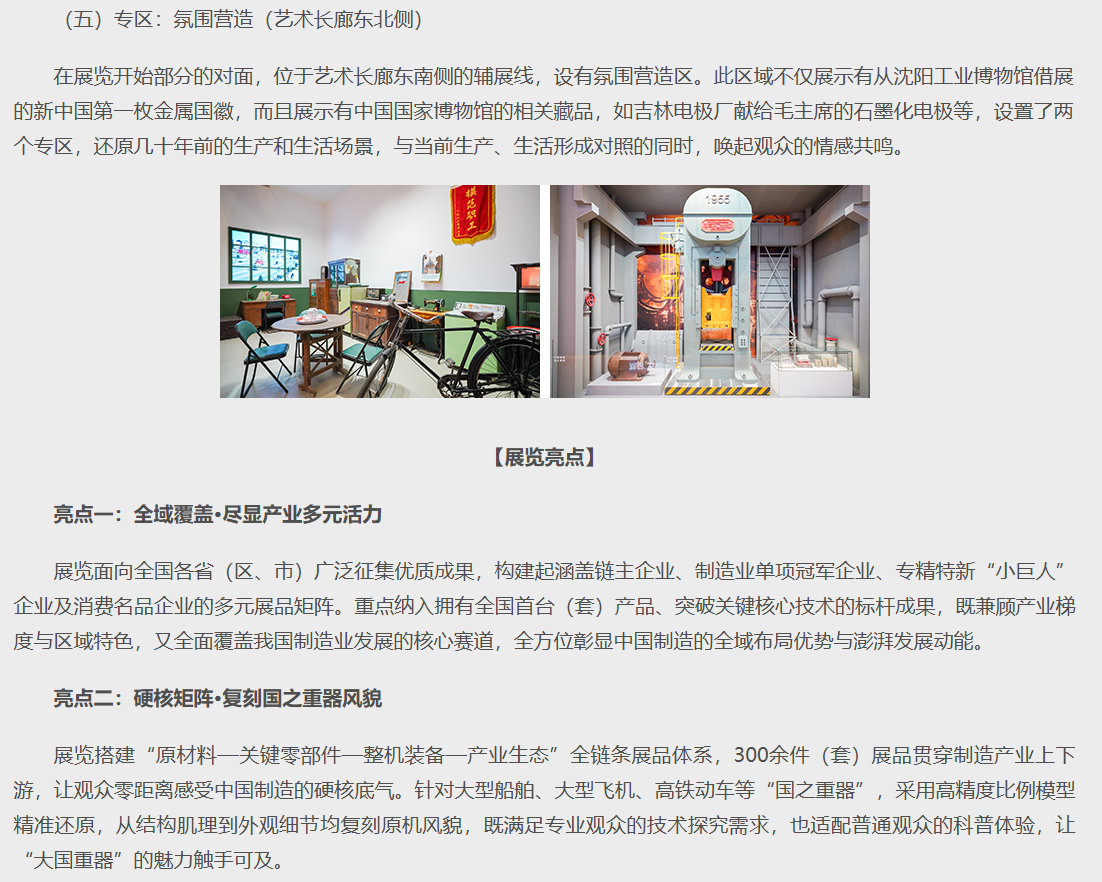 作为2025年度国家博物馆“国家展览”项目之一,本次展览通过高端制造、产业基础、智能制造、绿色制造、融合发展、美好生活等六部分、300余件(套)展品,全景呈现“十四五”期间中国制造蓬勃发展的历程,为公众直观呈现中国制造的硬核实力与民生温度。