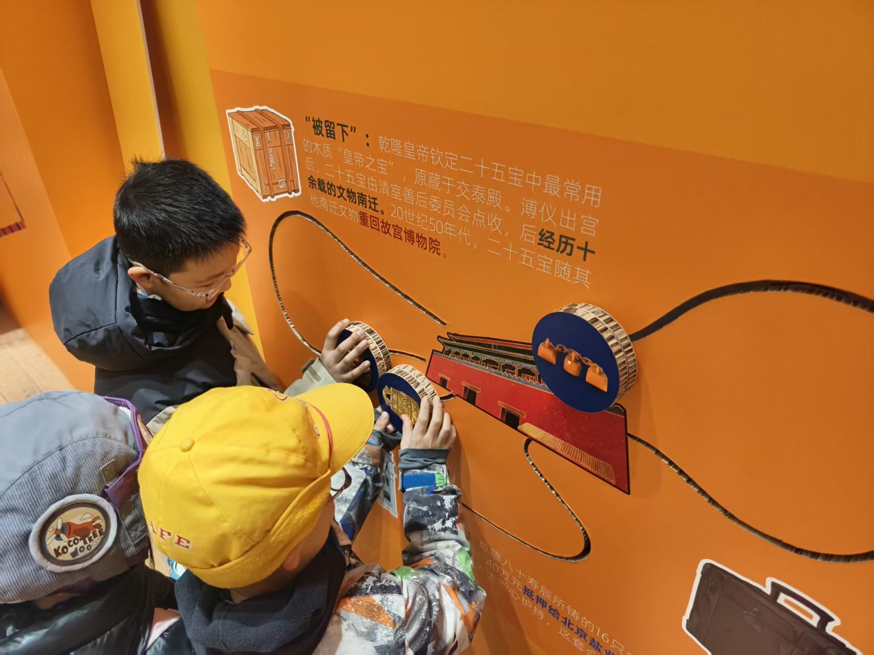 仪式后,嘉宾与师生代表在策展团队的引导下参观了展览。在六个色彩主题单元中,观众通过丰富的互动装置与叙事设计,亲身探索故宫的守护故事、文明传承、交流互鉴与可持续理念,带着一颗颗童心,沉浸在动手操作与探索发现的过程中。