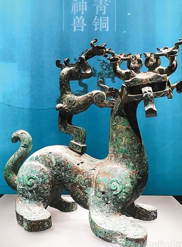 同样来自河南南阳的青铜神兽,以其独特的外观和精巧的工艺,令参观者赞叹不已。神兽为龙首、蛇颈、虎身、龟足、豹尾,双目圆睁,牙齿锋利,给人以既凶猛又可爱的印象。头部以6只小龙构成角,背部还攀附着一只小兽,整体造型十分灵动。它是楚文化艺术风格的突出代表,反映了楚人丰富而浪漫的想象力,也展示了古代工匠高超的青铜铸造技艺,堪称春秋时期楚国青铜器的巅峰之作。
