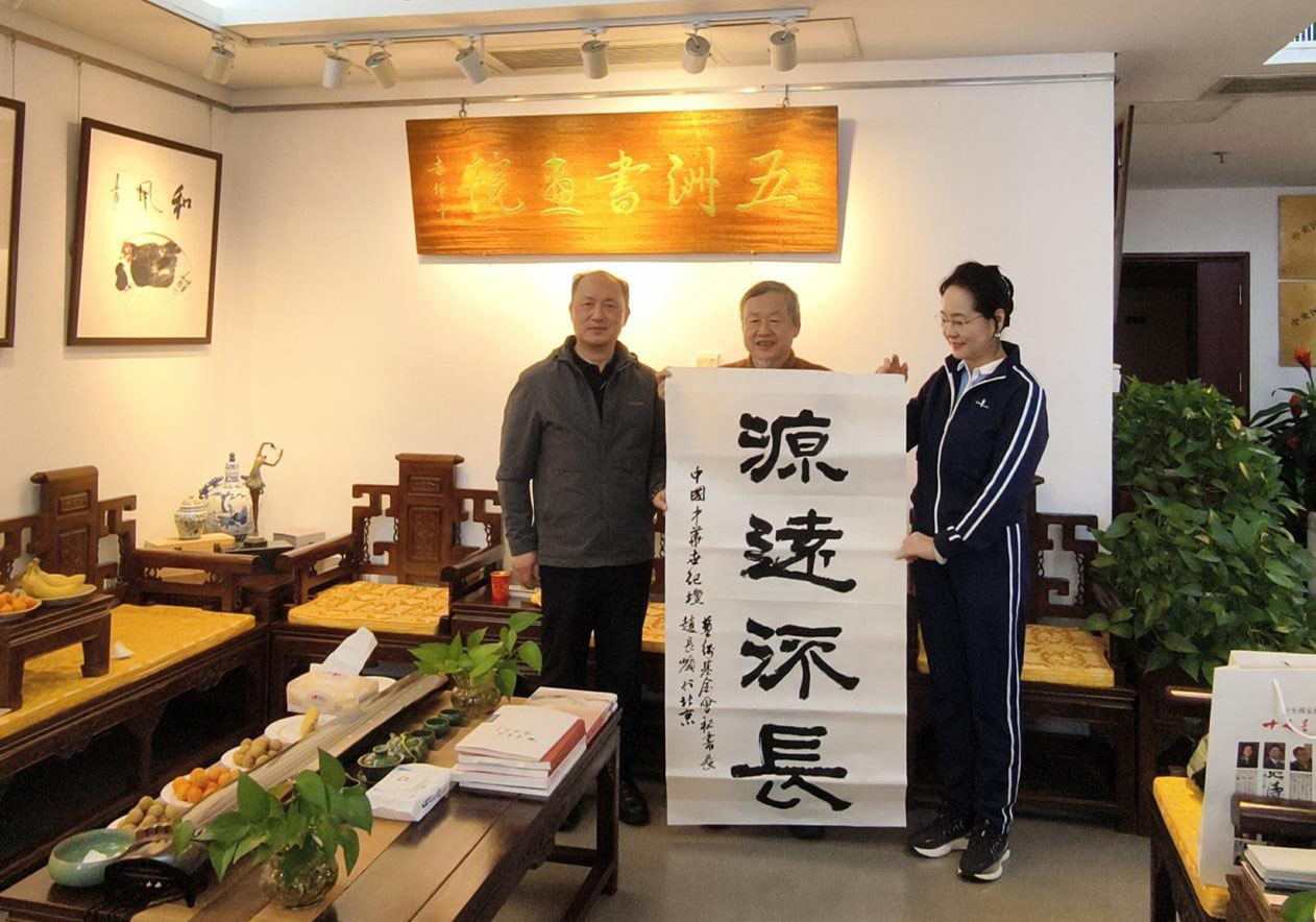 接下来中华世纪坛艺术基金会秘书长赵长岭先生以细腻遒劲的笔触书写了源远流长”四个大字,寓意两岸文化交流的历史传承。