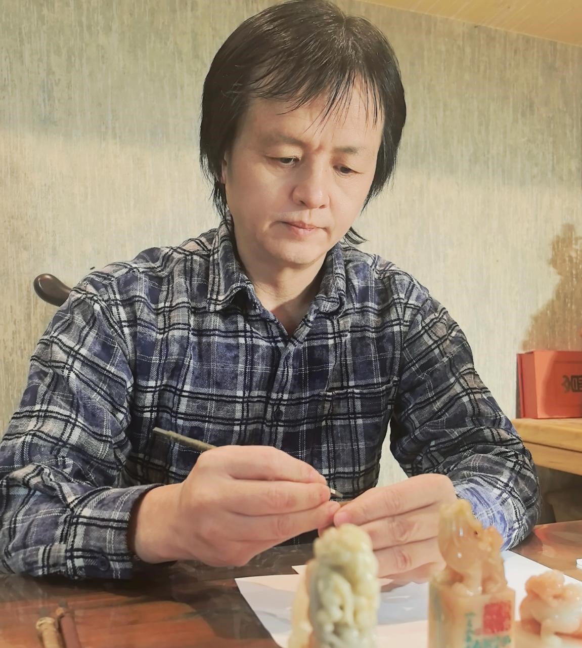 ▲徐承涛老师在篆刻