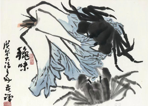 齐派弟子中,李可染主攻山水画,王雪涛开创小写意花鸟画,崔子范发展了“不似之似”与“浓墨重彩”,郭味蕖聚焦果蔬题材,且主题性更强。在写意精神、笔墨传统和题材定位上,真正与齐白石神韵相通的还是李苦禅。李苦禅从事教学工作,其大写意花鸟画在造型上更加严谨和收敛,融入了不少写生元素,尤其是在水墨渲染方面,其用墨的层次、墨线的节奏感与层次性更见功夫,既大刀阔斧又笔精墨妙,如《美人面牡丹》。