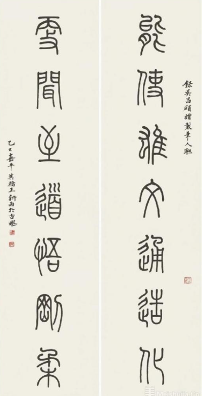 王新雨 吴昌硕《赠制笔人联》 篆书对联