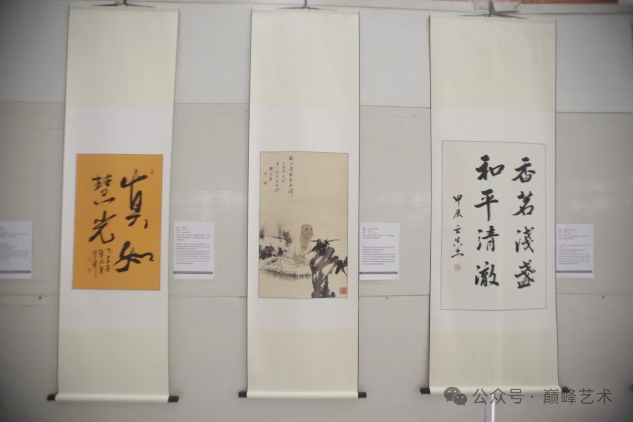 本次展览共展出220幅作品,参展作品既有佛教界高僧大德的书画作品,如星云大师、一诚大和尚、传印大和尚、本焕大和尚、净慧大和尚、觉光大和尚、明生大和尚、照诚大和尚、印顺大和尚等墨宝;有默默无闻、严守持戒、以艺弘法、年轻法师的作品,如续祥、本昌、圣明、延参、真龙、圣儒、悟凡、道坚、本悟、庆道、藏青、果光、道证、常定等法师们的作品;也有多安、尕玛藏扎、尕玛桑周、旺章江才、罗热等活佛的作品;还有三宝居士和专业书画家的作品。他们的书画作品,不但生动地展示了佛教博大精深的思想和智慧,也深受佛教界、文化艺术界和大众的喜爱。