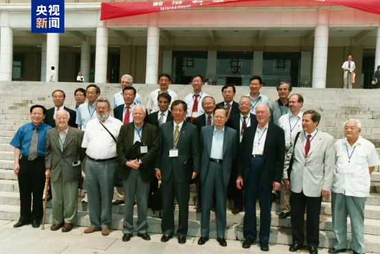 2002年杨振宁与出席清华大学举办的前沿科学国际研讨会的学者合影