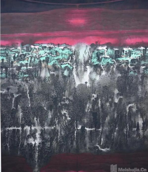 卢禹舜先生出生于北国冰城,北方广袤的土地和森林、淳朴善良的人民、晶莹剔透的冰雪,在他的艺术基因里涂抹上了静谧博大、神秘幽远的底色。卢禹舜先生是中国当代著名美术家,也是伴随着改革开放而崛起的新时代的中国画代表人物,他以崭新的视角将传统文化和时代精神完美融合,将人与自然相统一。他的绘画呈现出一个恢弘气象、充满灵性的神秘世界。那恢弘的气象、隽永的意蕴、厚实细腻的笔墨,构成了独特面貌。卢禹舜先生的作品像一道曙光,让人充满了幻想,感觉既远古,又现代,既有传统中国画技法和材料的特点,同时又很具新意,充满了当代生活气息,给人旷远辽阔、心旷神怡之感。