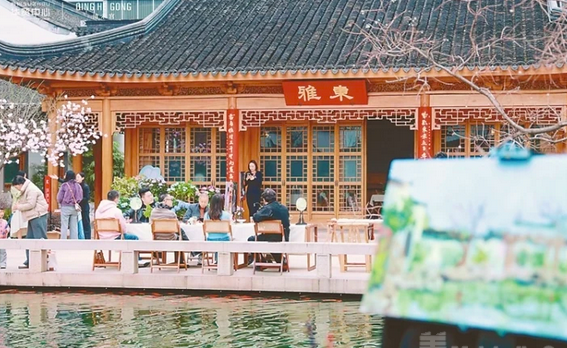 园林是大地上的山水画,紫芝园借景高楼,闹中取静,游人居者穿行于曲径回廊,乱针绣将春色织入绢帛,金漆在光影下流转,油画描绘着古园新春……仿佛在北宋画家郭熙所称“可行、可望、可游、可居”的画卷中漫游。正如张露所说:“我们不是在简单地复原古人的雅集,而是在寻找一种属于这个时代的生活方式。”随着物质富足后大众精神需求的增强,雅集以新的面貌呈现,成为集传统美学、现代需求、商业运营与媒介传播等于一体的文化创新。雅集不是日常,而是对日常化的探索;雅集不是单次事件,而是对城市文化内容的持续更新;以“雅集”观照“日常”,新中式生活便成为一种触手可及的生活方式。清禾雅集探寻的是如何艺术地生活,它既回应了个体对诗意栖居的追求,也契合了城市高质量发展的文化逻辑。