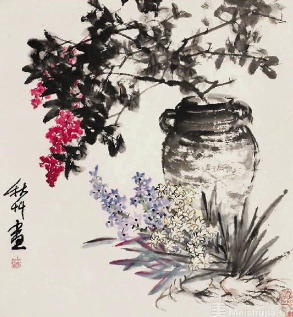 陈秋草先生(1906—1988)以清新隽永、雅俗共赏的花鸟画闻名。他深谙传统笔墨精髓,尤擅没骨技法,同时积极借鉴西洋绘画的色彩与光影表现,形成了构图新颖、设色明丽、意境恬淡的个人风格。其作品常于细微处见精神,在平凡中显生机,充满浓郁的生活气息与鲜明的时代感。